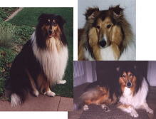 drawing three collies Percy, Eros and Ricky on white cardboard