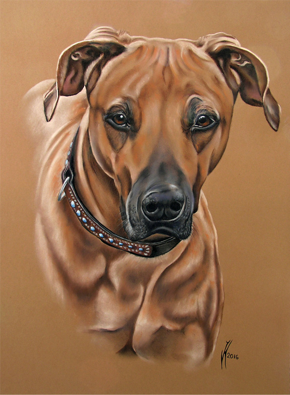 Kohle-/Pastellzeichnung Ridgebackrüde "Amir" auf