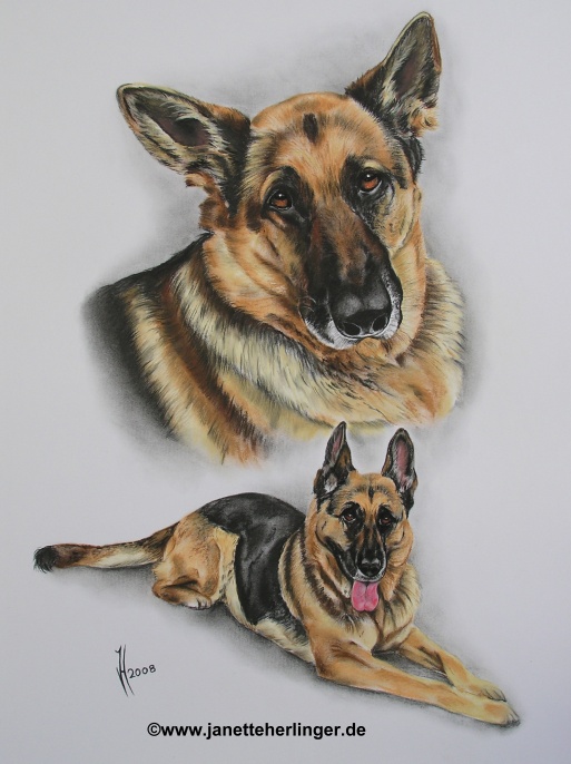 Die farbige Kohle-/Pastellzeichnung ist eine sehr lebensechte, ausdrucksstarke Art der Darstellung, bei der das Tier in seiner ganzen natürlichen Farbe dargestellt werden kann. Dies kann entweder auf weißem Papier oder Karton erfolgen ...