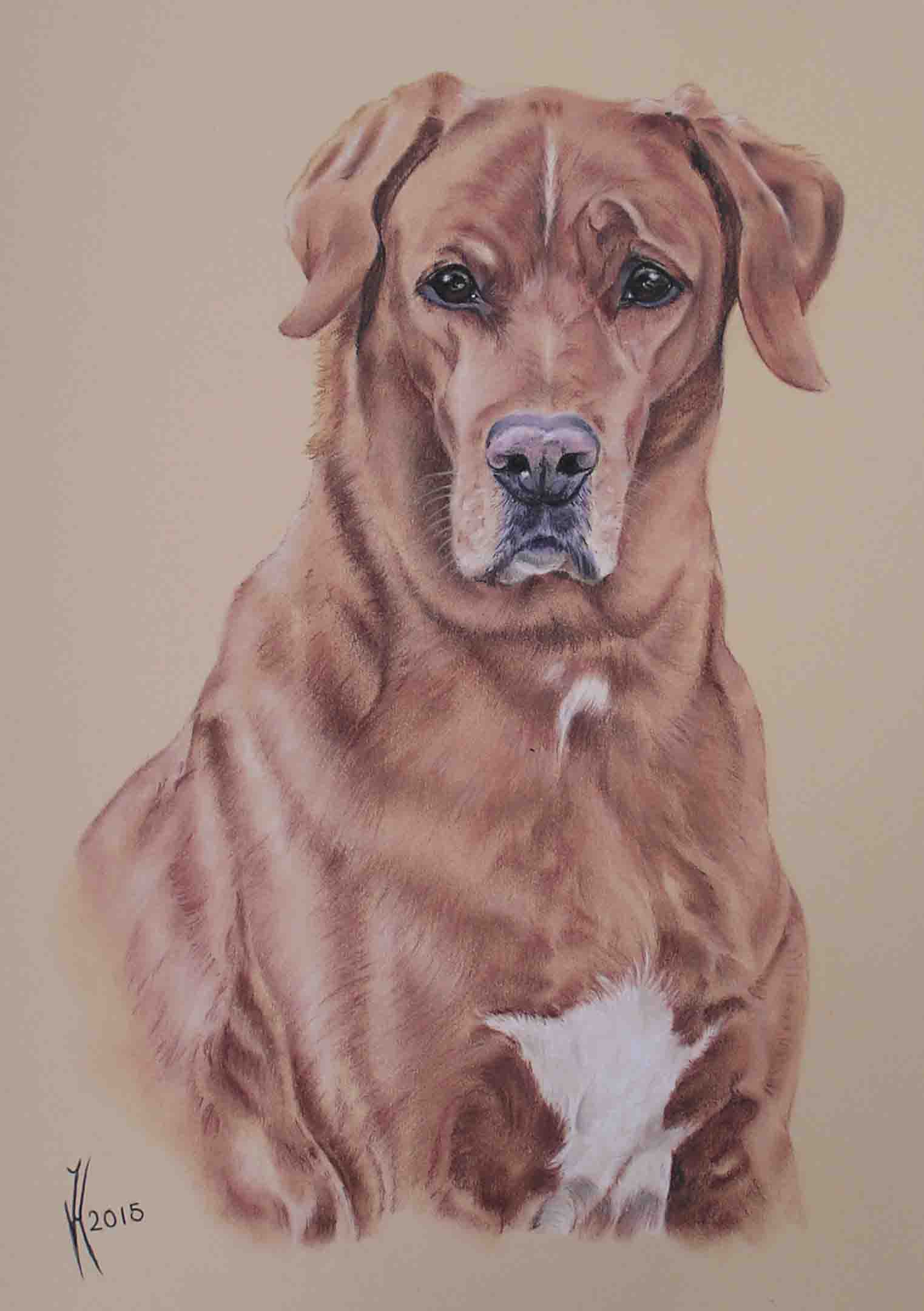 Kohle-/Pastellzeichnung Mischlingshündin "Ayla" auf
