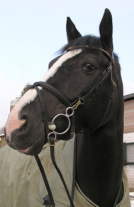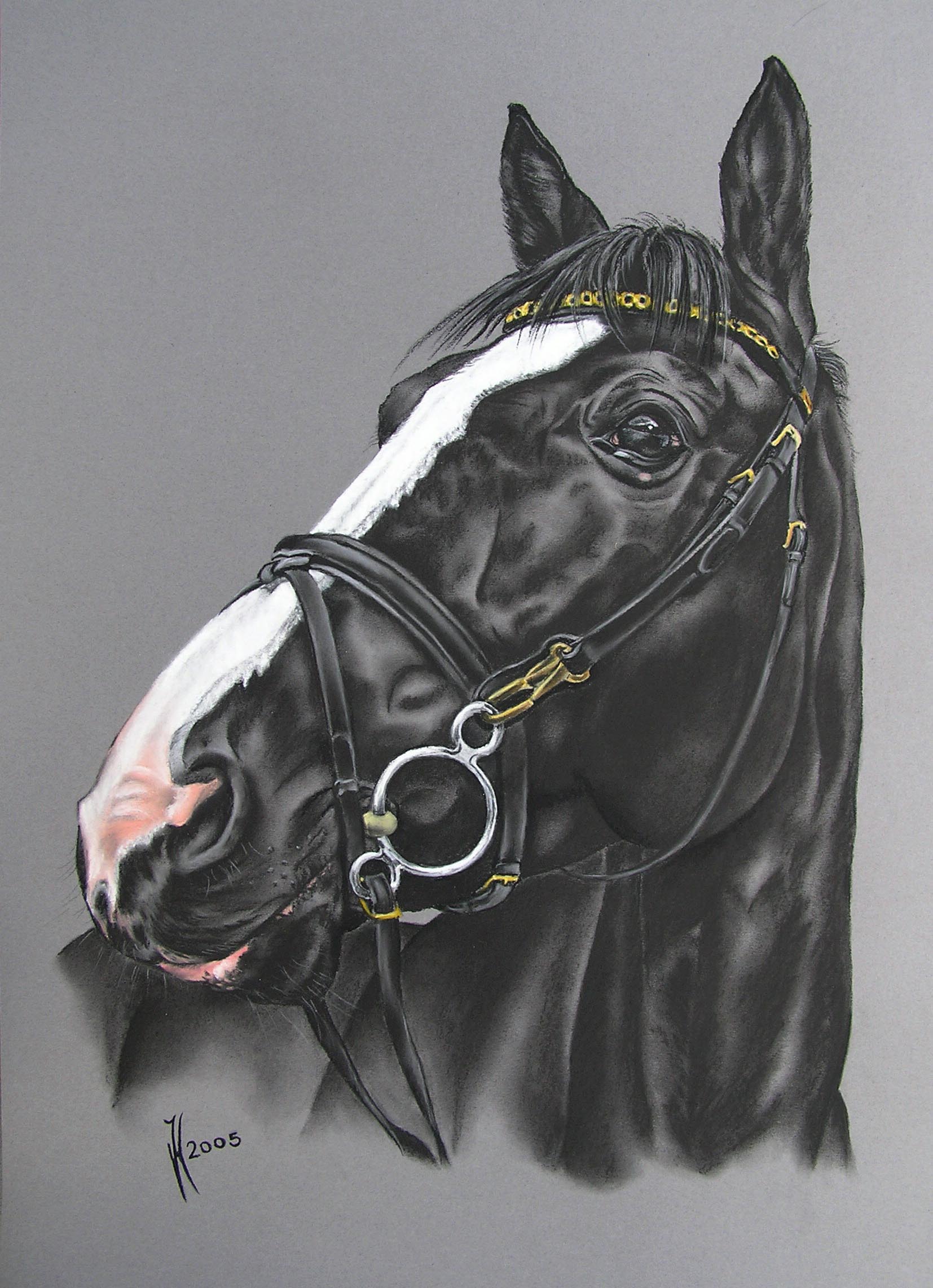 Charcoal/Pastel drawing black gelding Ben on grey cardboard