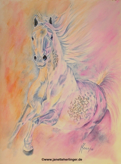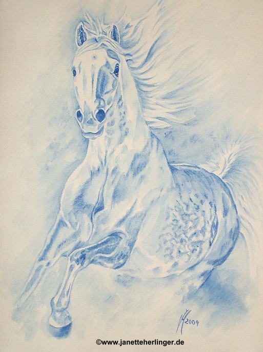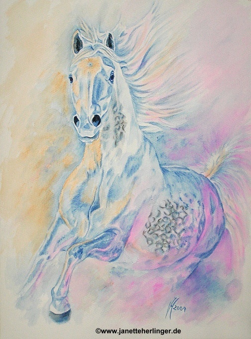 und ein paar Farben wären schön. Also nahm ich all meinen Mut zusammen und zerstörte das blaue Pferd - und es wurde ein buntes daraus. Mal sehen, ob ich noch mal