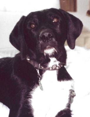 Mischlingshündin Bonny auf grauem Fotokarton,
