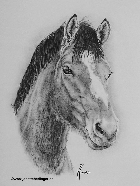 Portrait überarbeitet, um das Pferd so zu zeigen, wie sie es am liebsten sieht. On request of the owner this portrait was reworked to show the horse just like she likes to see him most. |