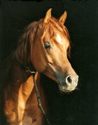 des Fuchsaraberhengstes El Thay Mameluk auf schwarzem Karton