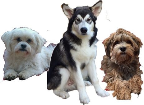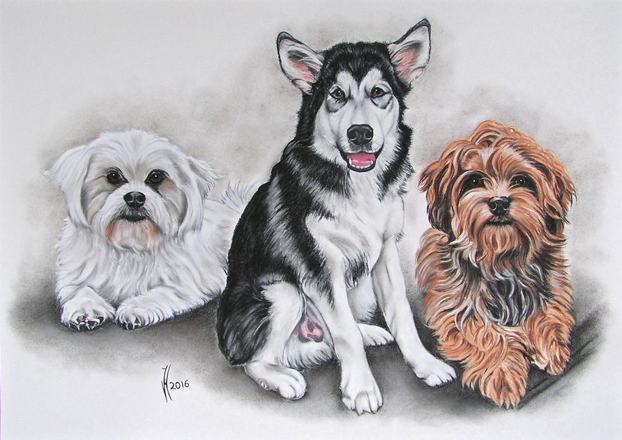 drawing male Havanesians "Emil" and "Pepe" and male Husky "Barry" on