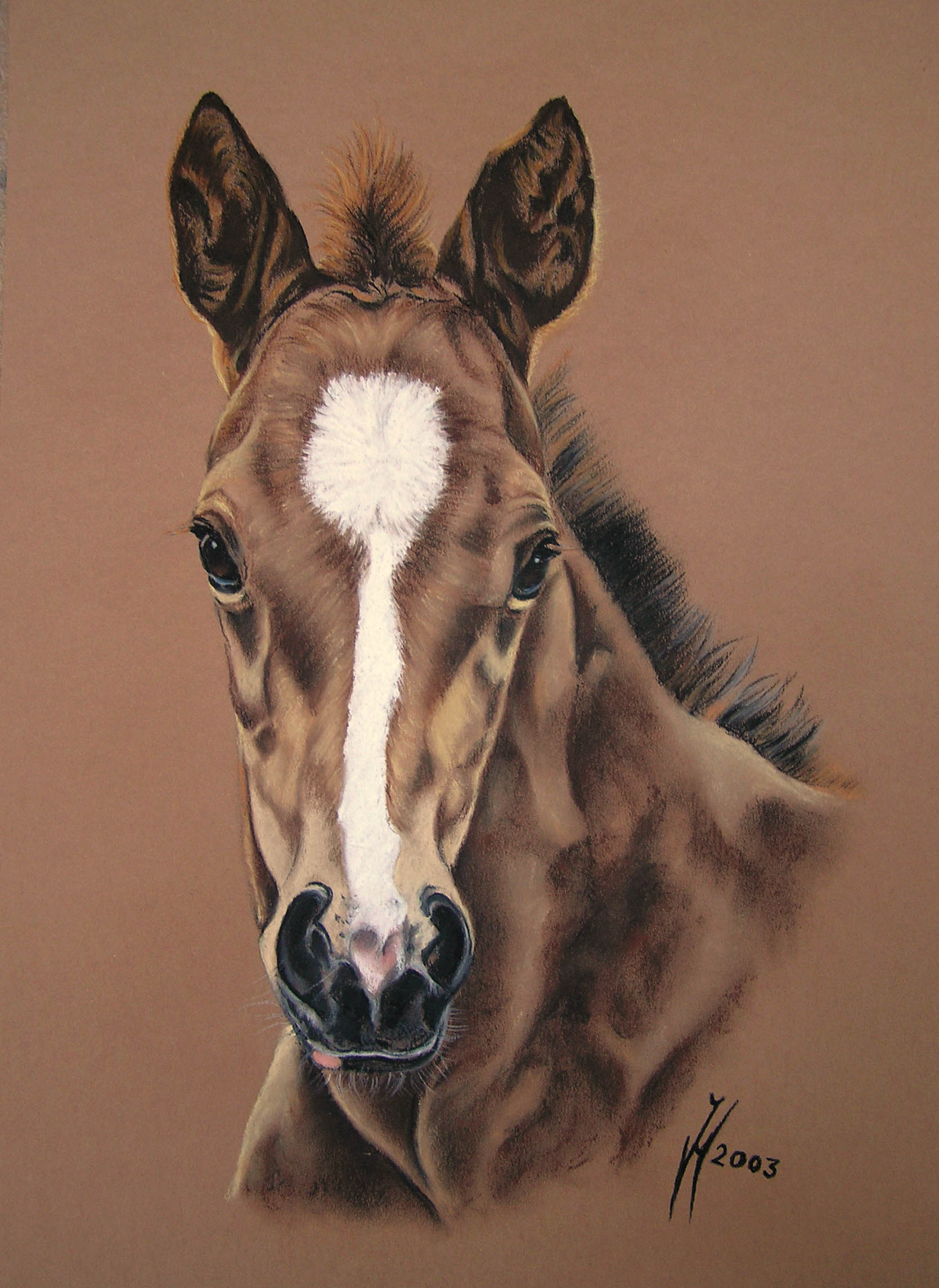 drawing colt Esquibo (bred and owened by Janette Herlinger) on brown cardboard
