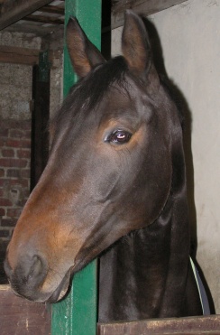 Rheinländer-Stute "Final Touch" auf dunkelbraunem Fotokarton