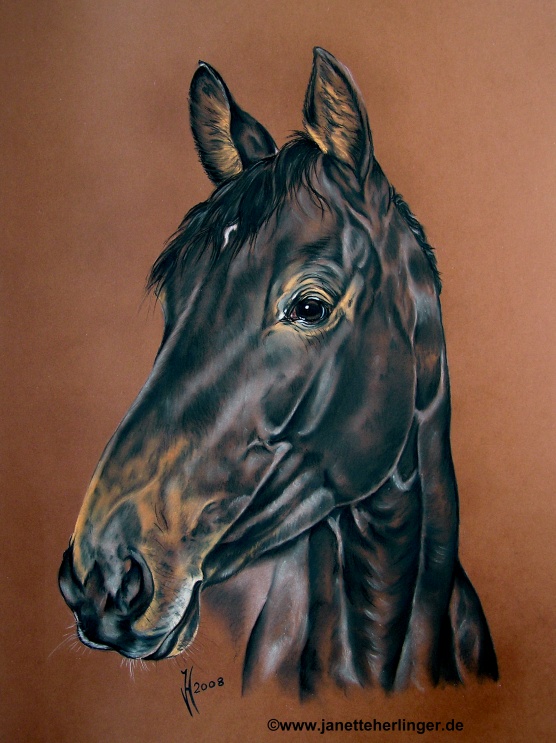 drawing Rhineland mare "Final Touch" on darkbrown cardboard