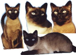 2 Tonkanesen (Kreuzung zwischen Siam und Burmakatze) und 2 Siamkatzen Aladinchen,