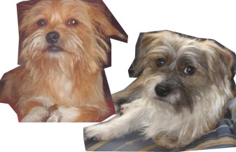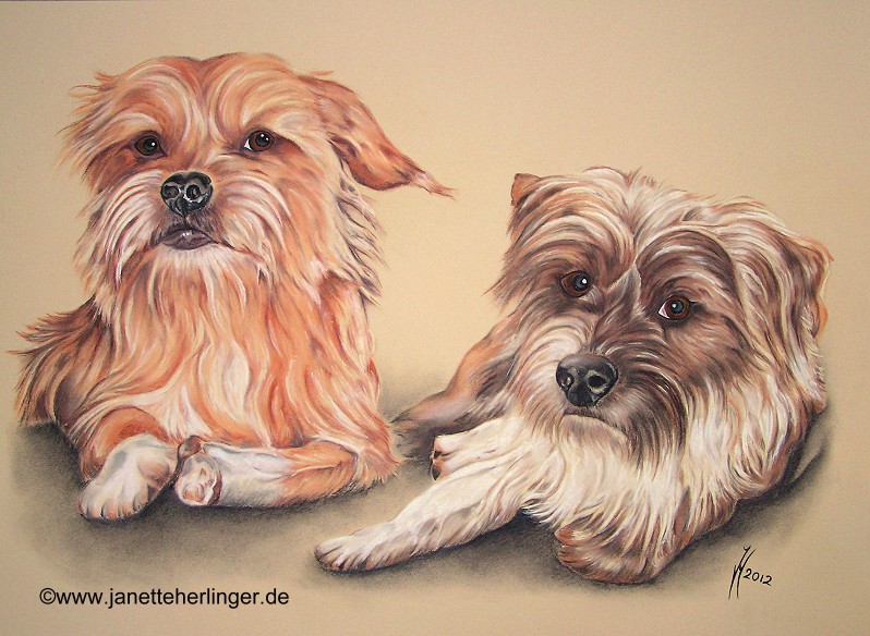 Mischlingshunde aus Spanien "Henry & Matz" auf beigem Fotokarton.