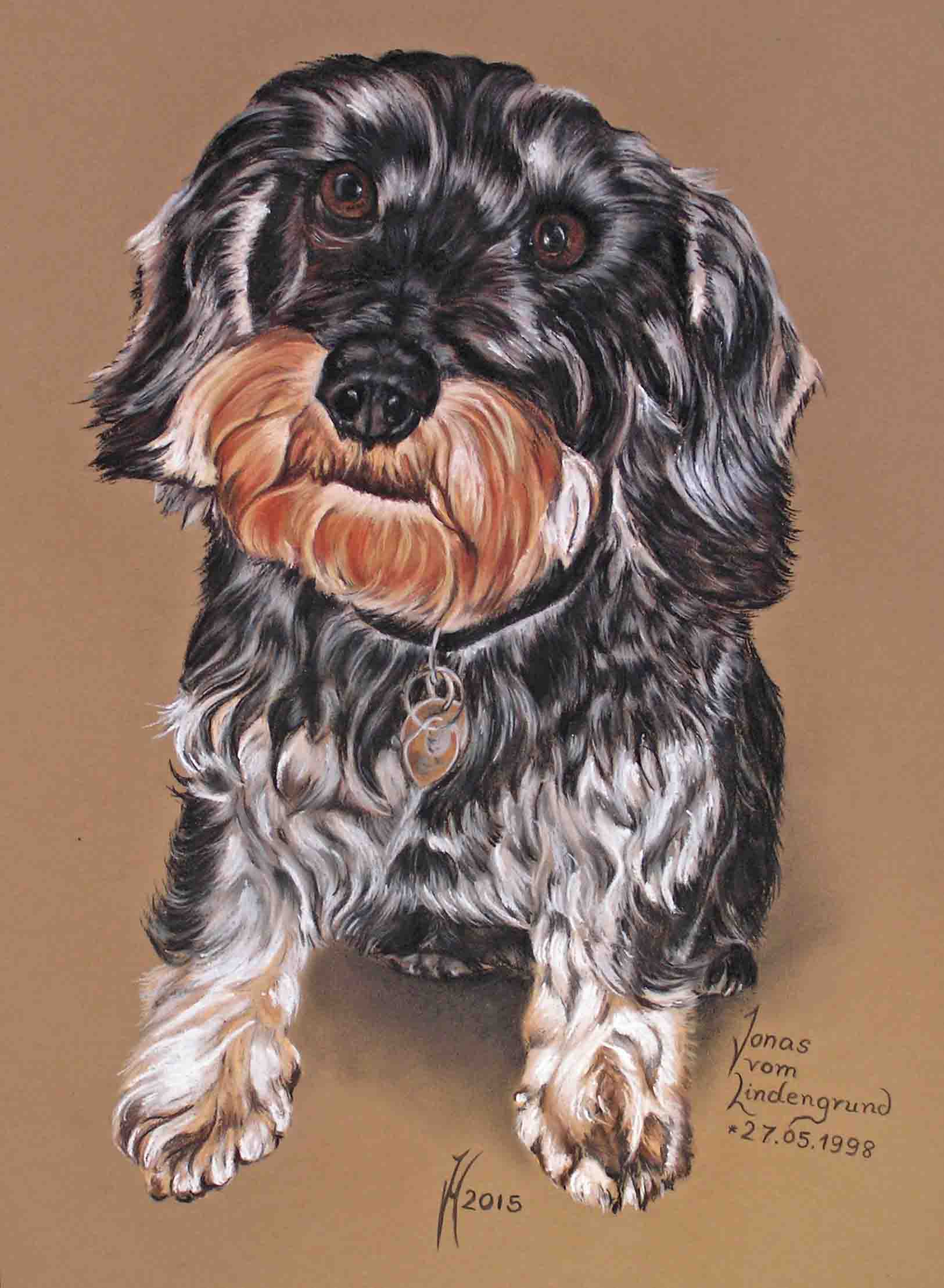 Kohle-/Pastellzeichnung Rauhaardackel "Jonas vom Lindengrund" auf
