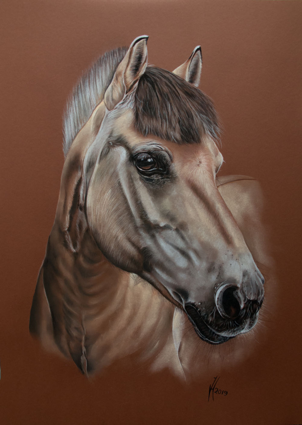 drawing Fjord horse "Joris" on brown cardboard