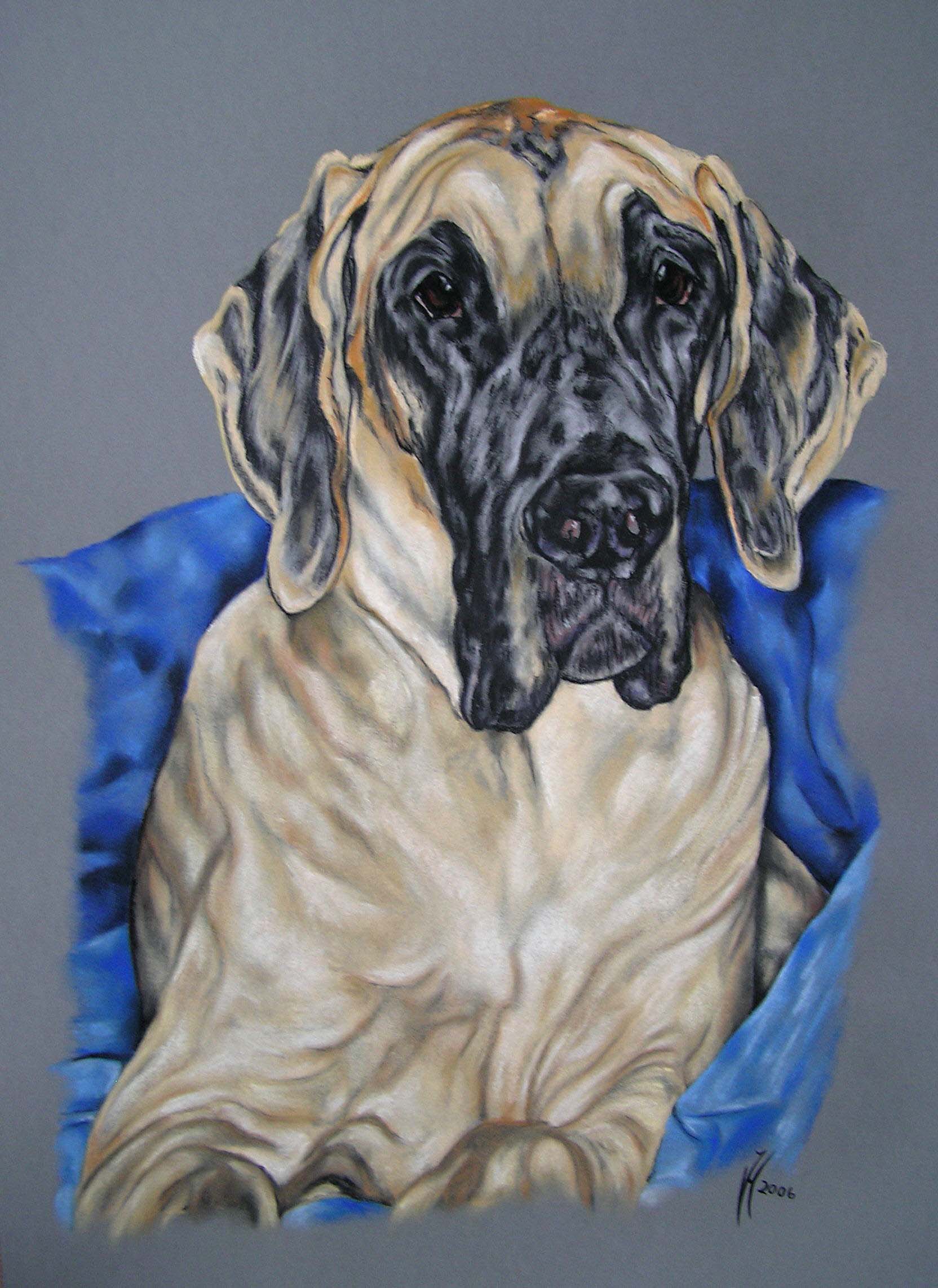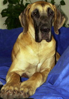 Doggenhündin "Kimba" auf grauem Fotokarton