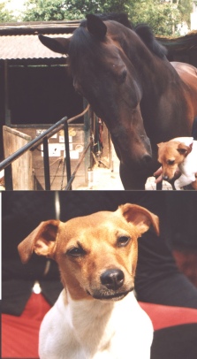 dunkelbrauner Wallach Leon und Jack-Russel-Hündin Diva auf