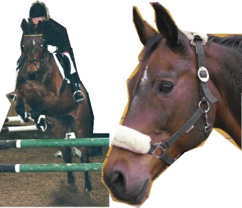 von Springpferd "Lili Marleen" über dem Sprung und Kopfportrait
