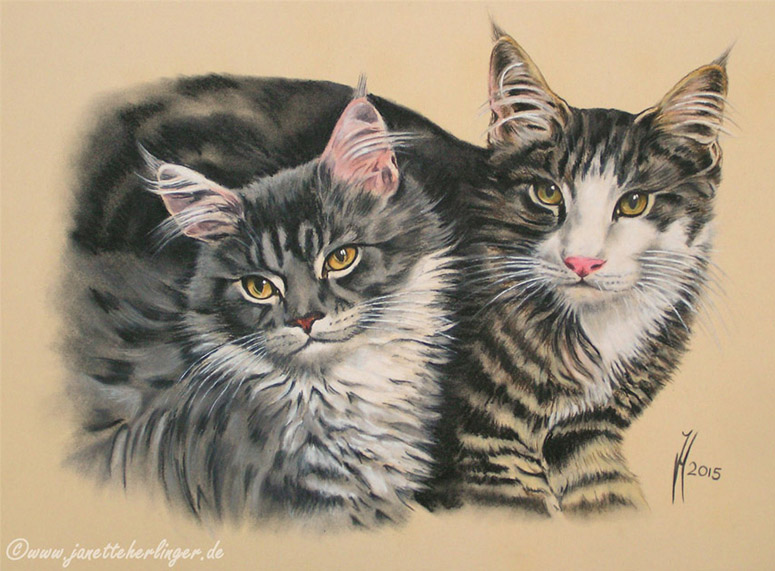 Kohle-/Pastellzeichnung Maine Coone Katzen "Lissi & Rocky" auf