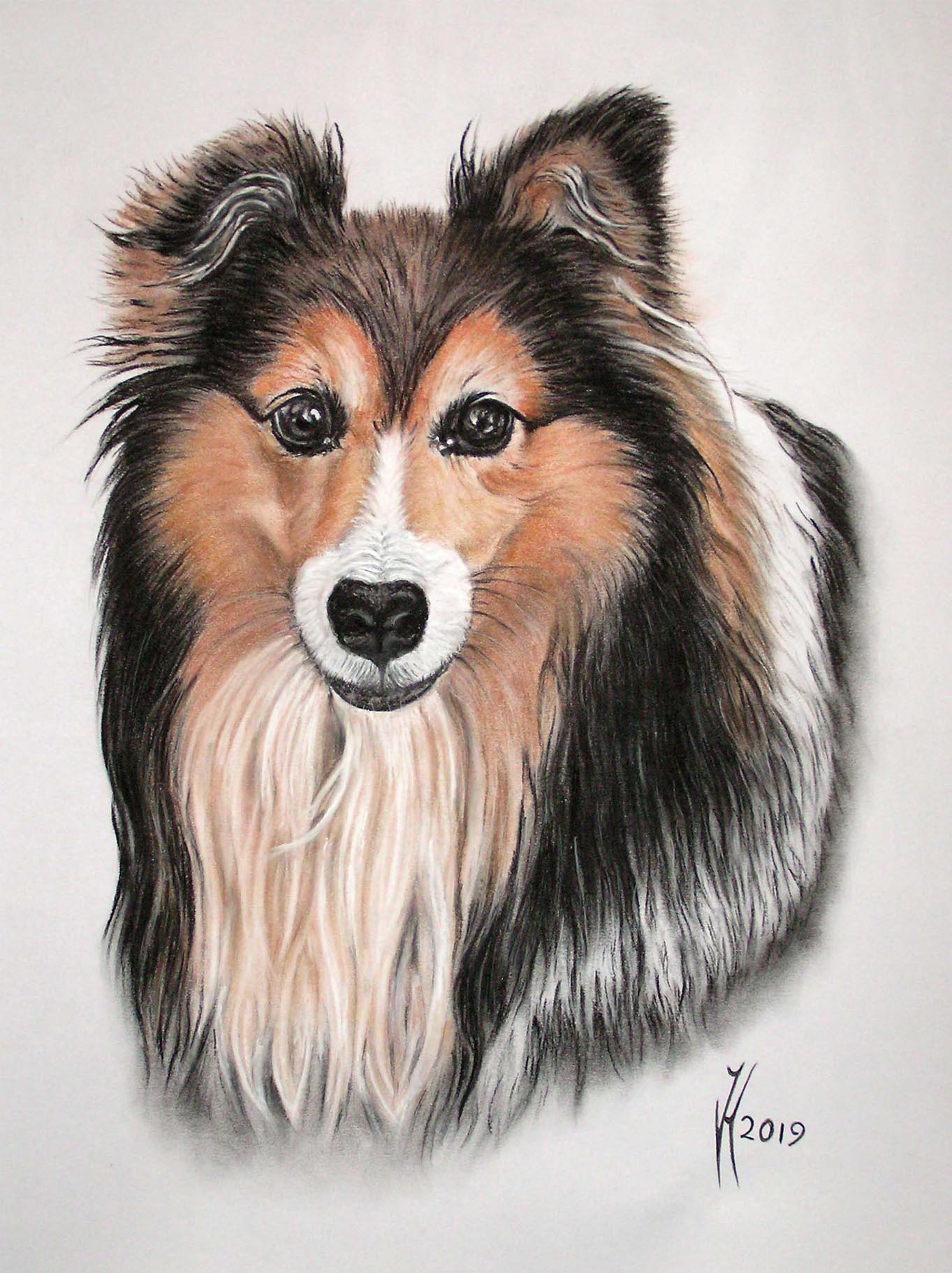 Kohle-/Pastellzeichnung Sheltie-Rüde "Luke" auf