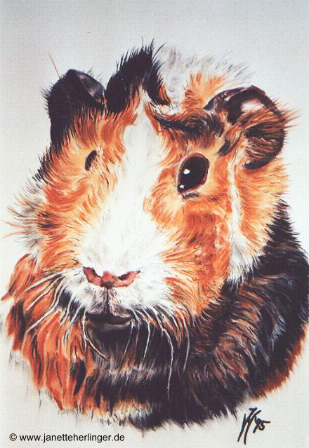 Meerschweinchen auf weißem Papier Charcoal/Pastel