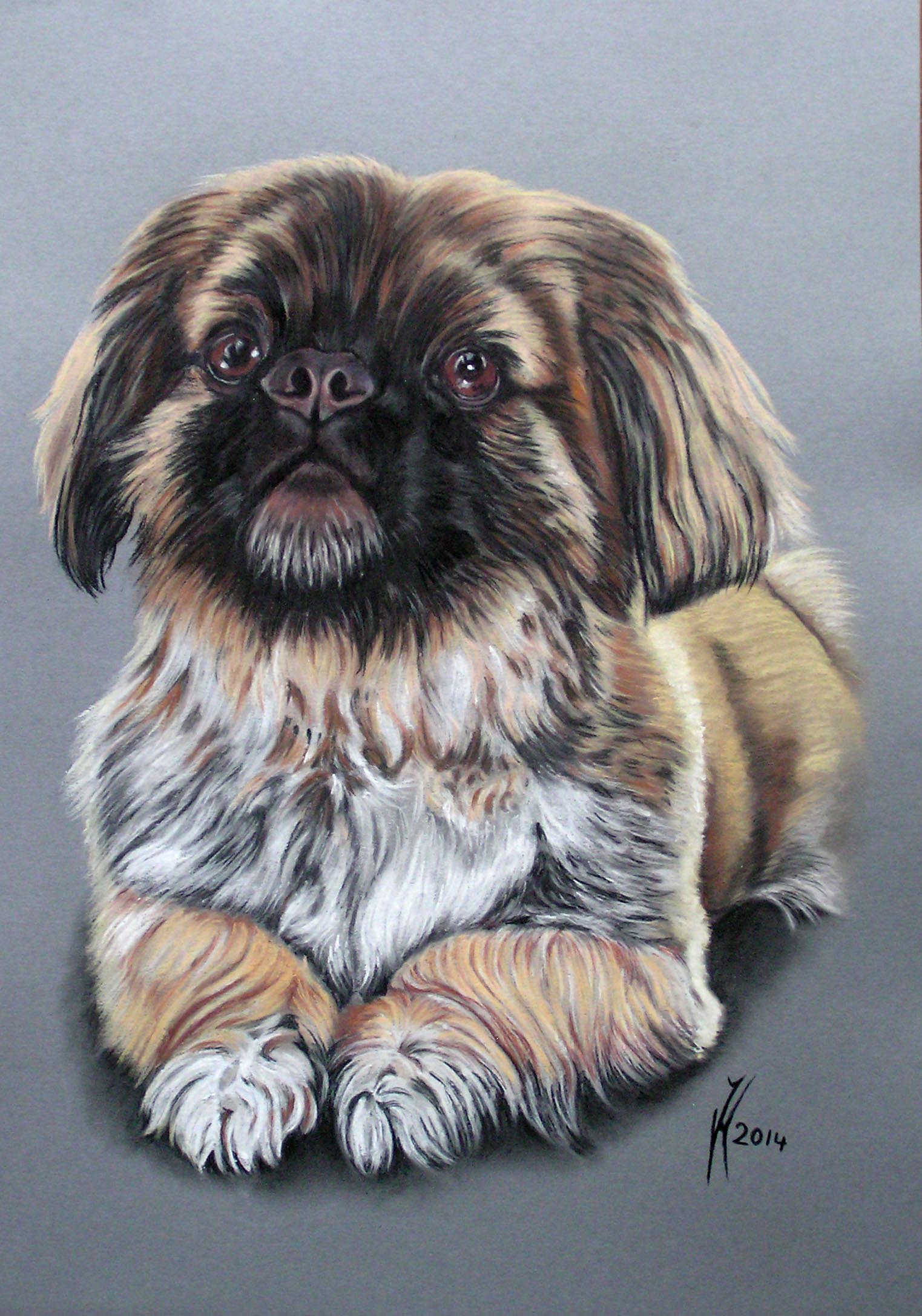 Kohle-/Pastellzeichnung Pekinese "Mojo" auf grauem Fotokarton