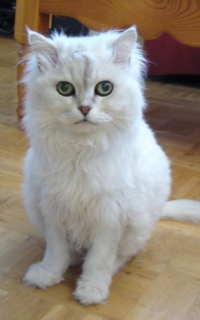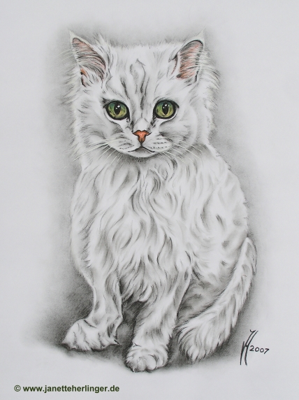 persian male cat "Nico" on white paper with coloured eyes and nose