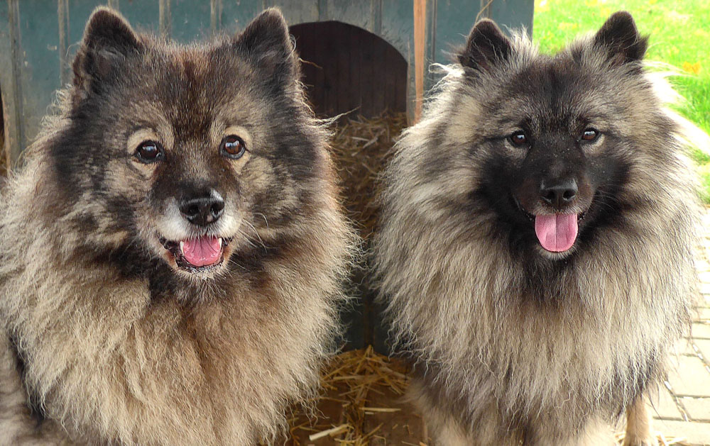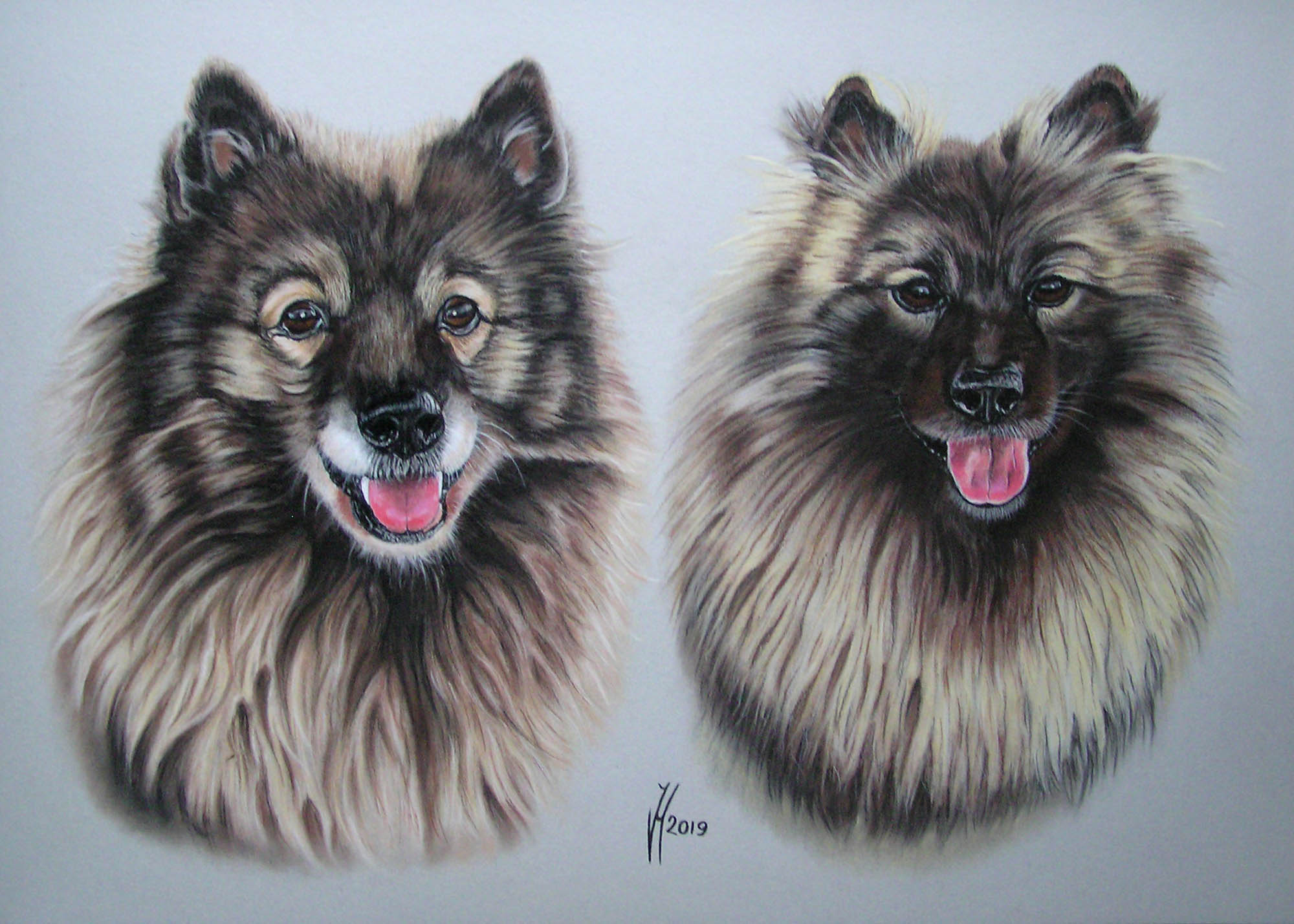 wolfspitz dogs "Nora & Moritz" on grey cardboard