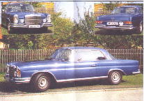 drawing darkblue Mercedes Benz 280 3,5 Coupé on beige cardboard