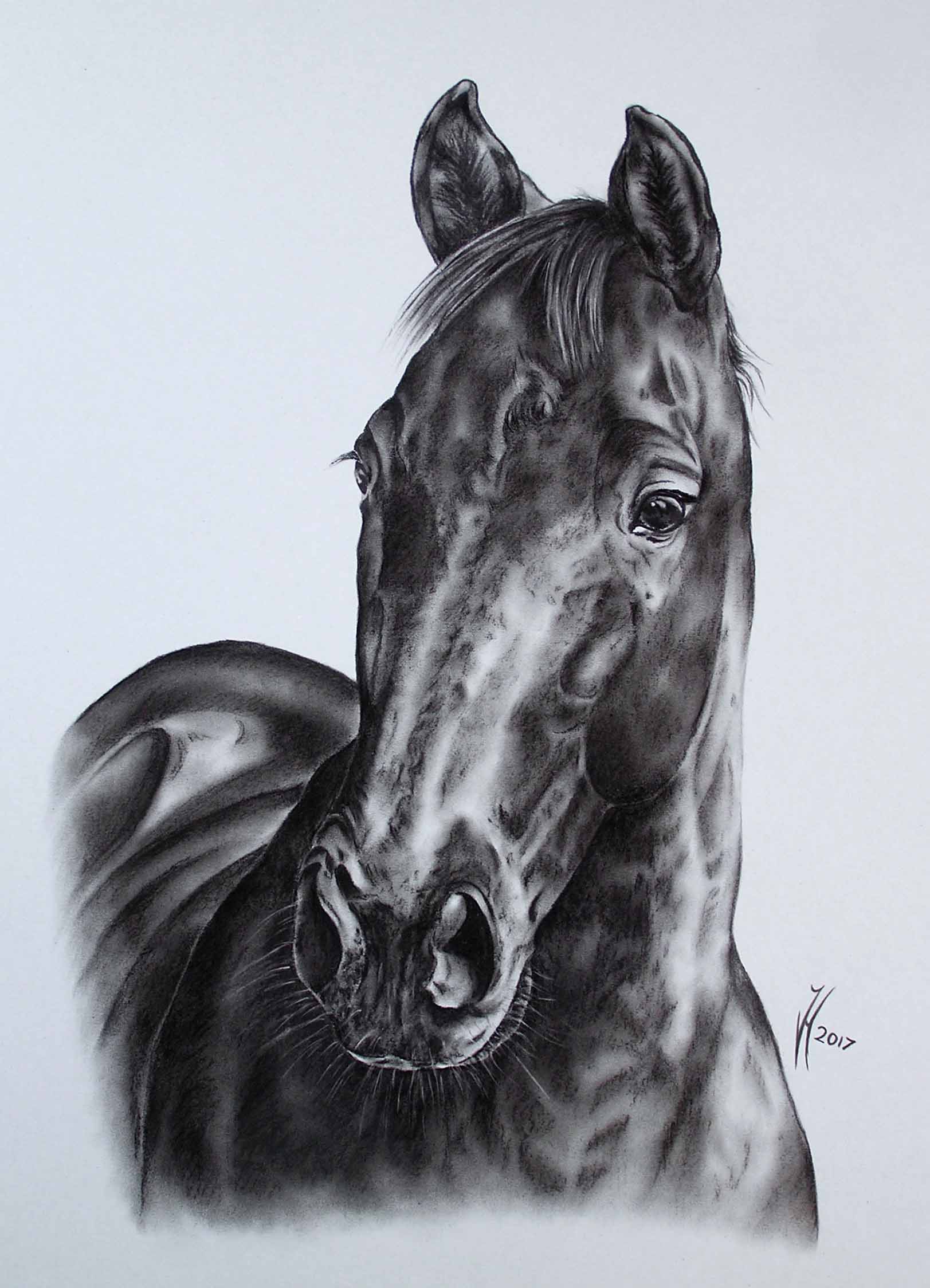 Kohlezeichnung Wallach "Parsival" auf weißem