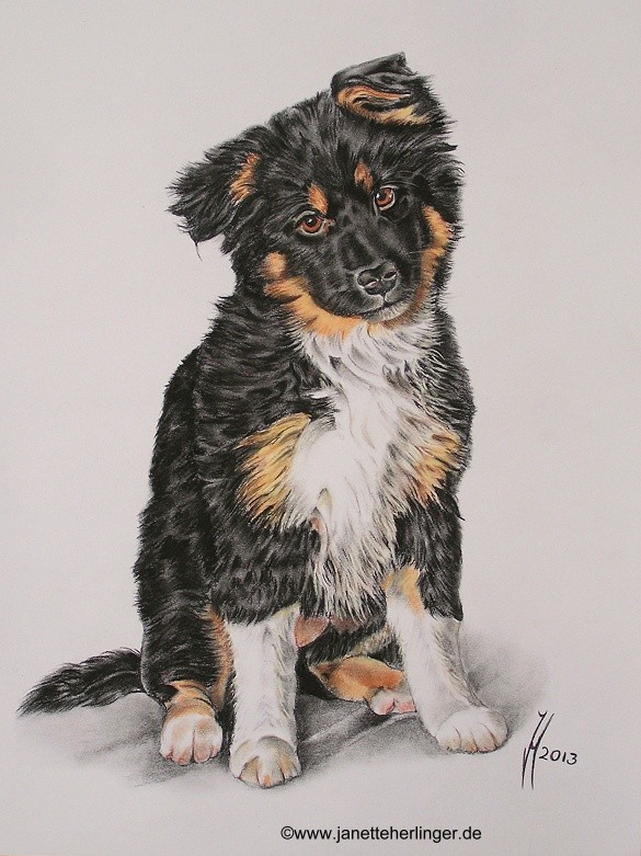 Australian Shepherd/Labrador-Mix "Paula" auf weißem Papier