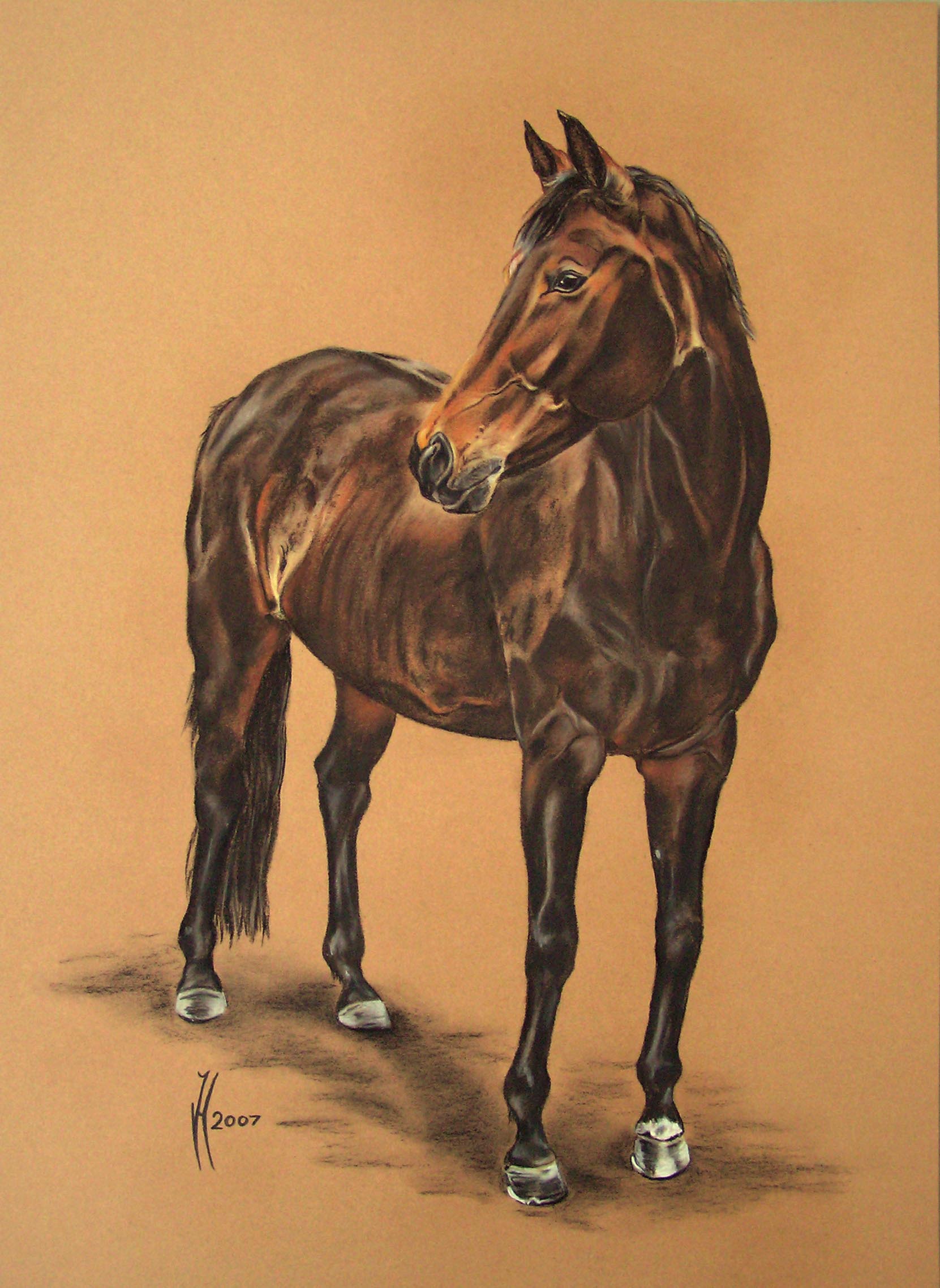 drawing brown mare "Pretty Witch" on brown cardboard