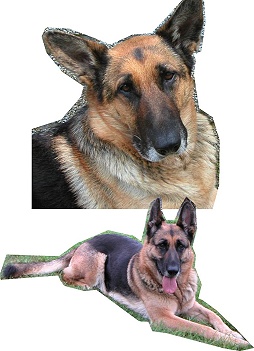 drawing German shepherd "Sam", head and whole, on white cardboard