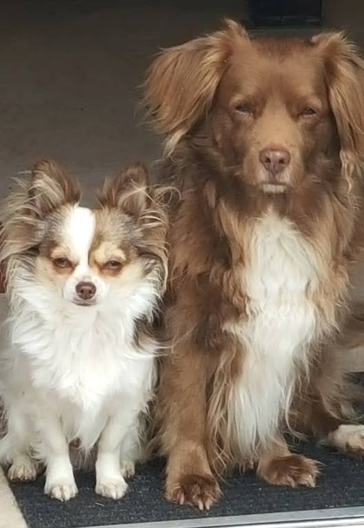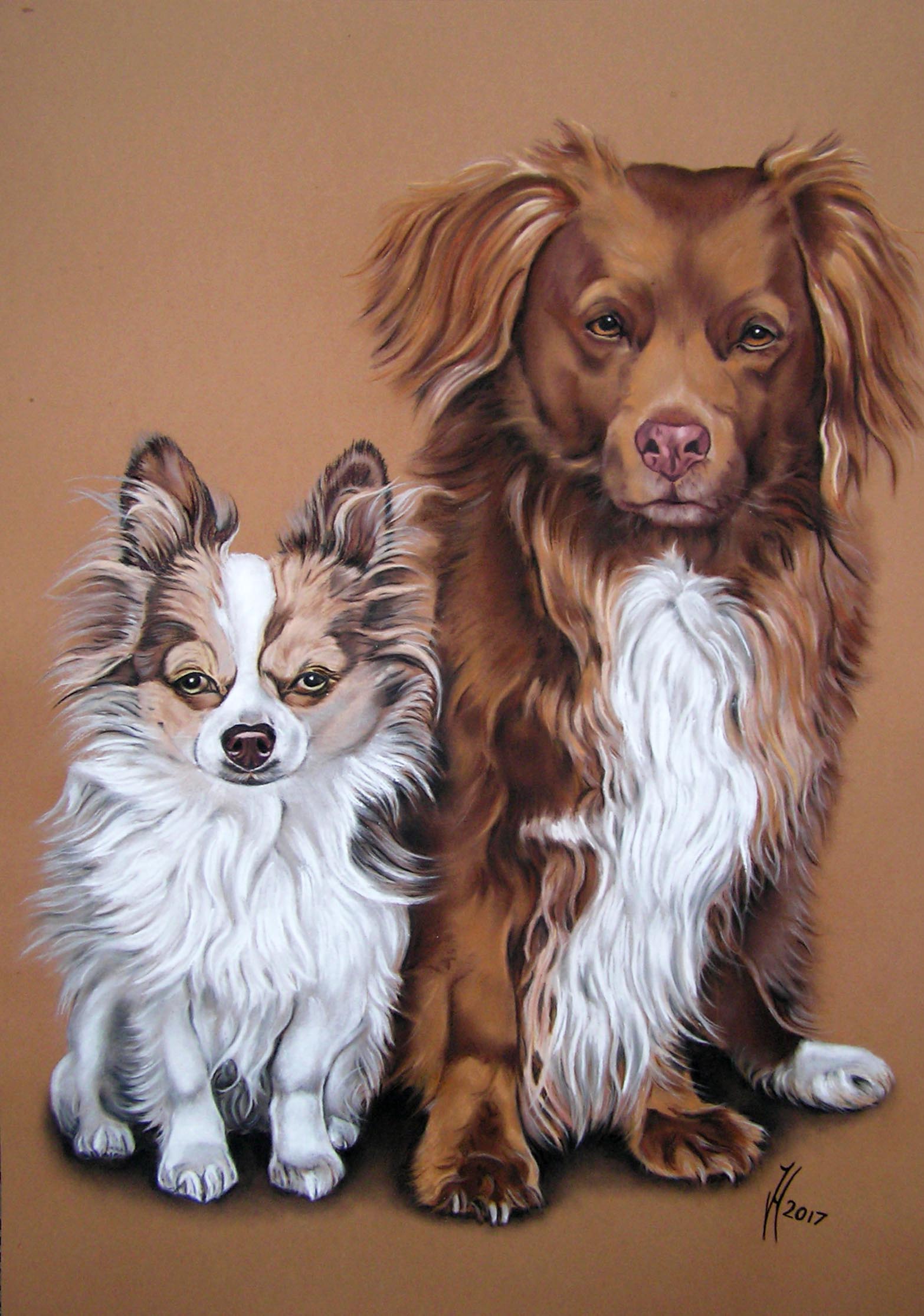 Kohle-/Pastellzeichnung Mischlinge "Sammy & Tony" auf braunem Fotokarton