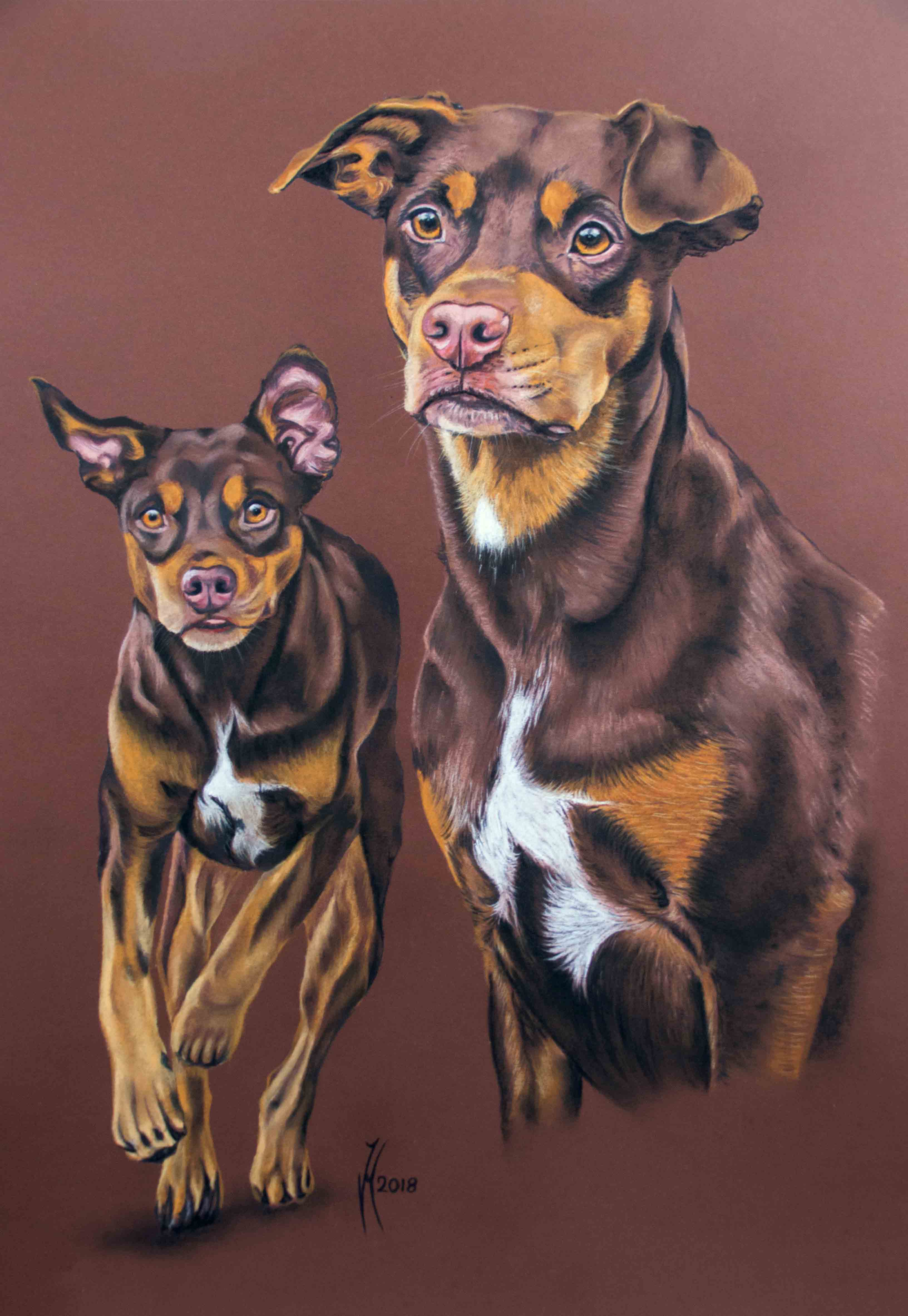 Kohle-/Pastellzeichnung Mischlingshündin (Australian