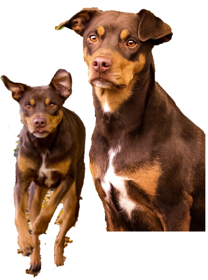 mixed female (Australian Shepherd x Boxer) "Shiva" on redbrown cardboard