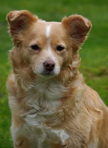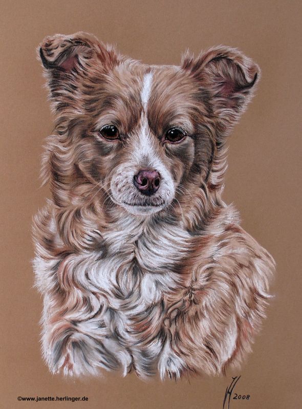 Mischlingshündin Susi auf braunem Fotokarton