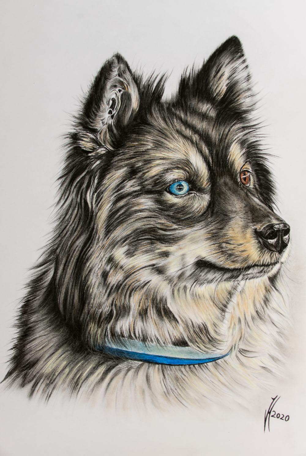 Kohle-/Pastellzeichnung Finnische Lapphündin "Tala" auf