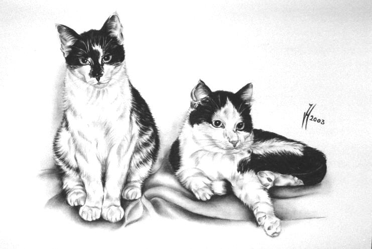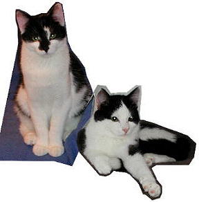 black-white house cats Tom & Jerry on white cardboard