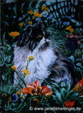 persian male cat of Janette Herlinger, Haskan, in flower bed