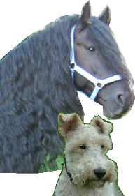 Friesenwallach "Romke" und Foxterrierhündin "Elfe" auf